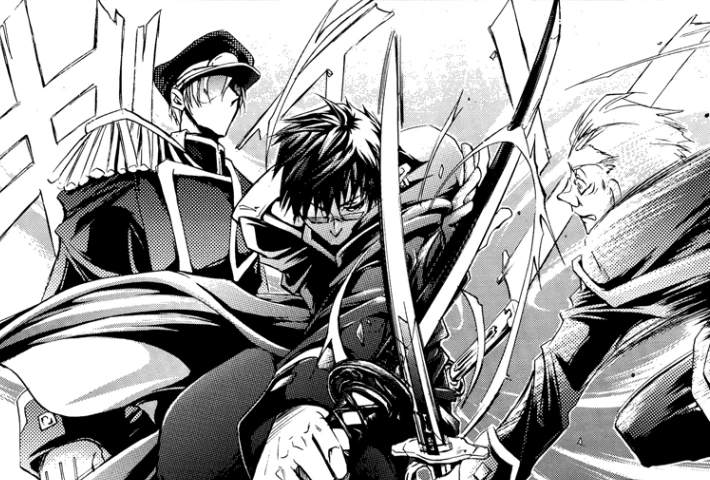 - ↑ In Kapitel 28 it is shown that Ayanami ordered one of his subordinates to give Teito Kreuz's pass because Miroku told he to, and he did not know why Miroku wanted Teito to have Kreuz's pass.